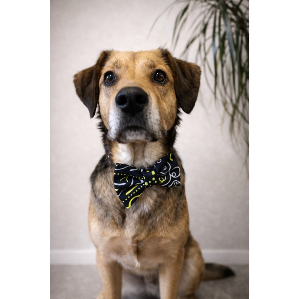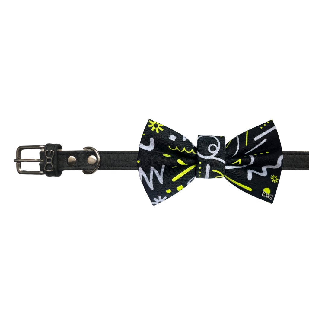Černý psí motýlek s funky neónovým vzorem