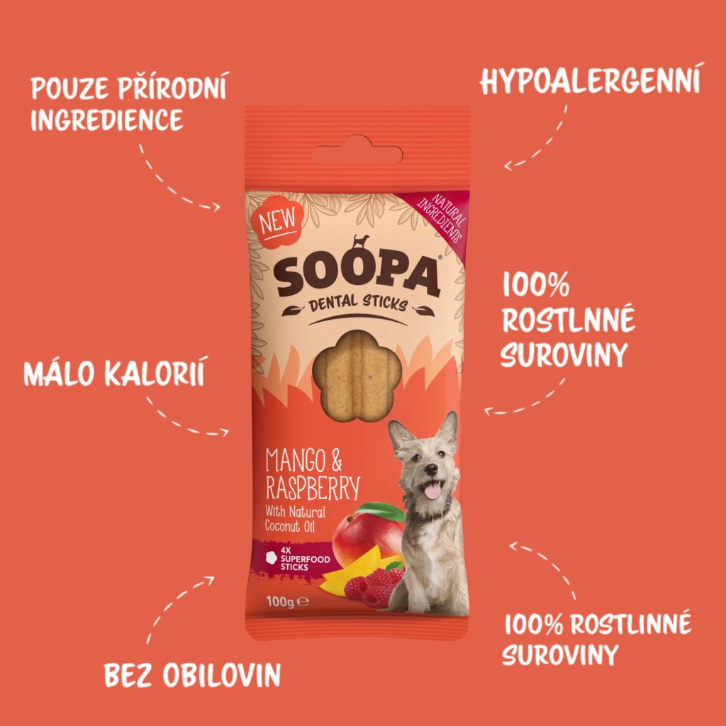 Dentální tyčinky Soopa Mango & Malina 🥭❤️