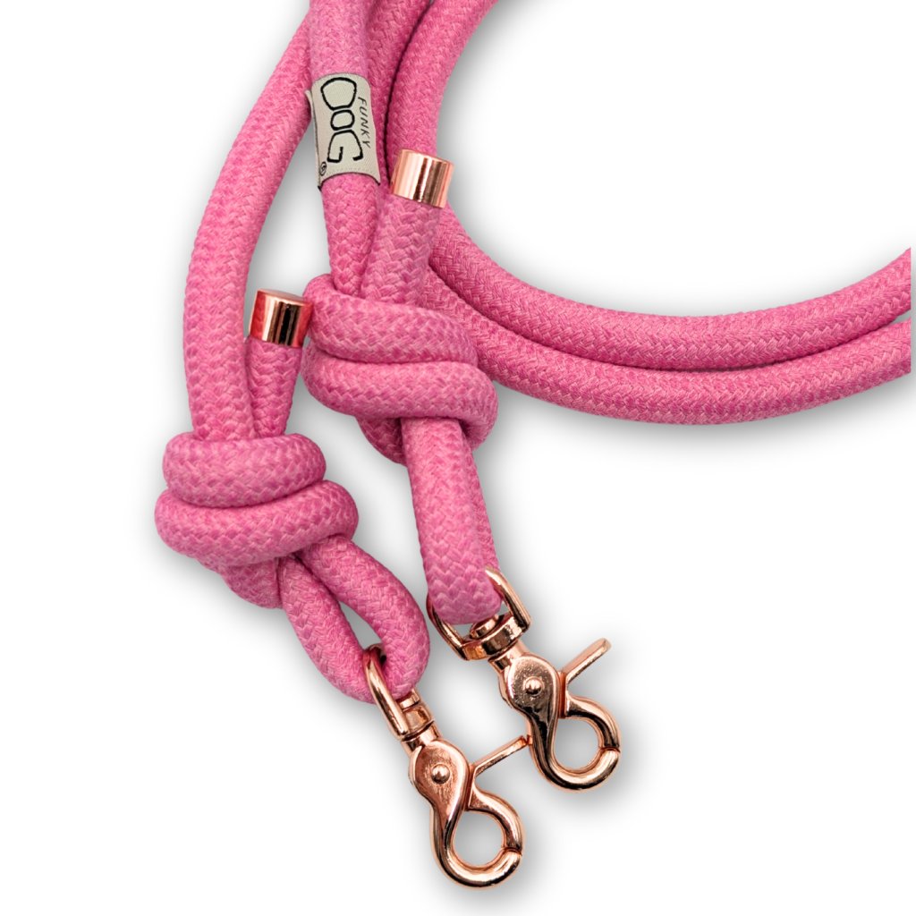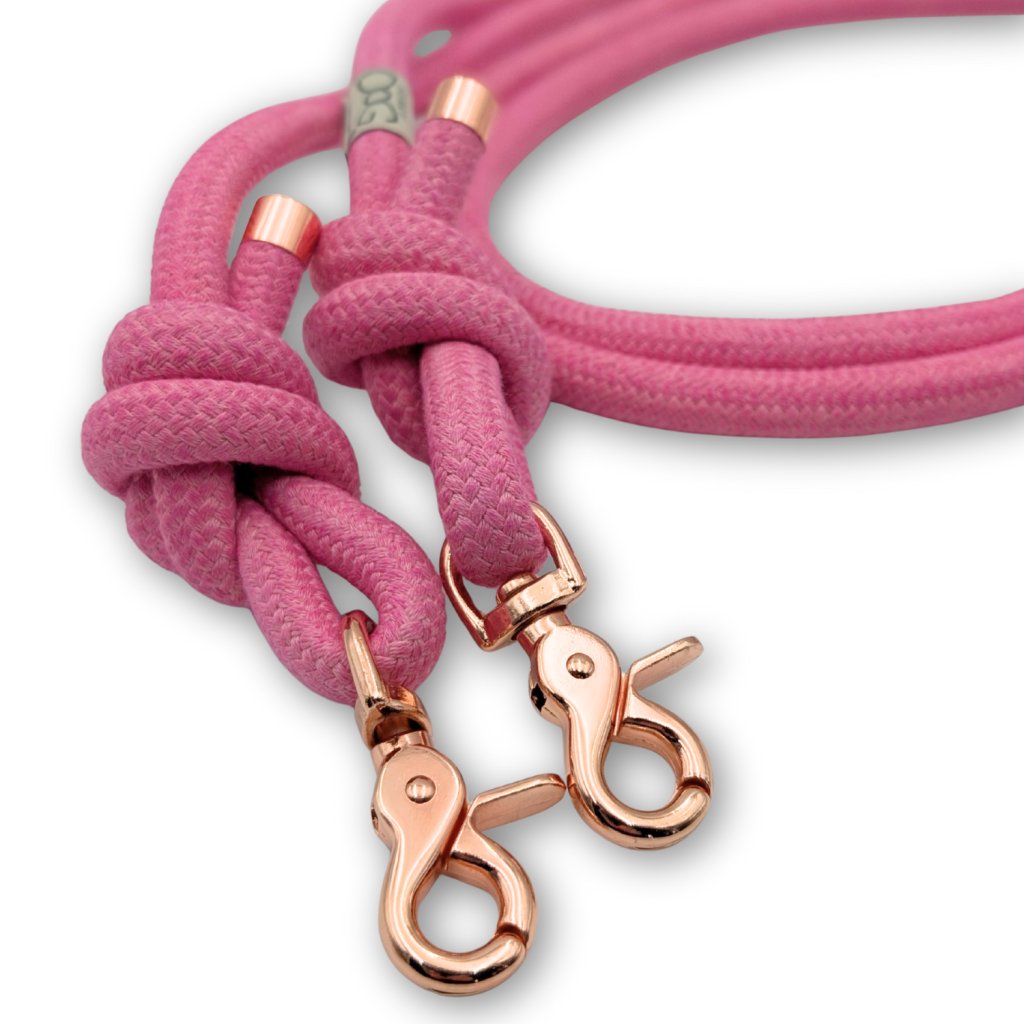 🌿 Stylové bavlněné vodítko pro psy s rose gold komponentami – ruční výroba v ČR.