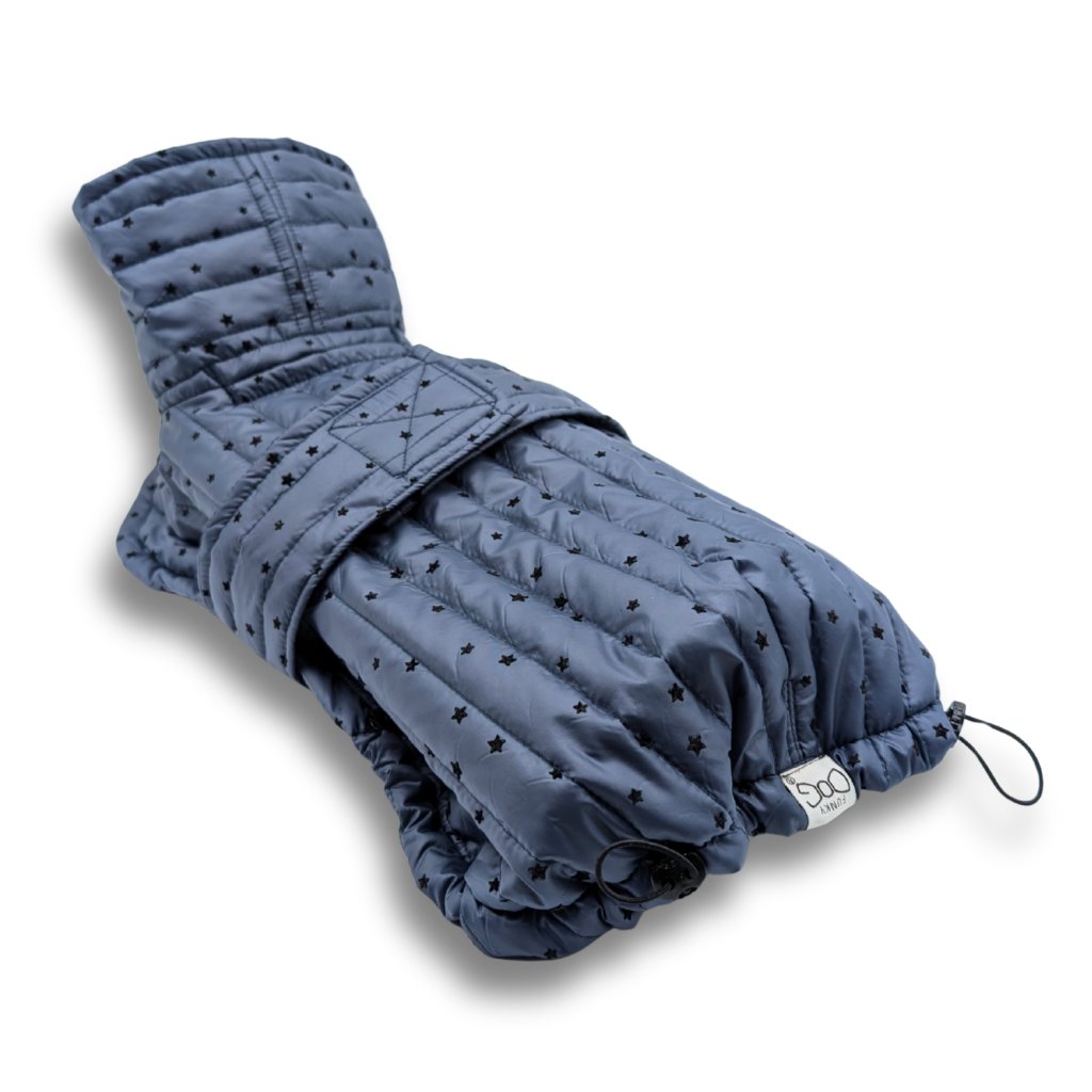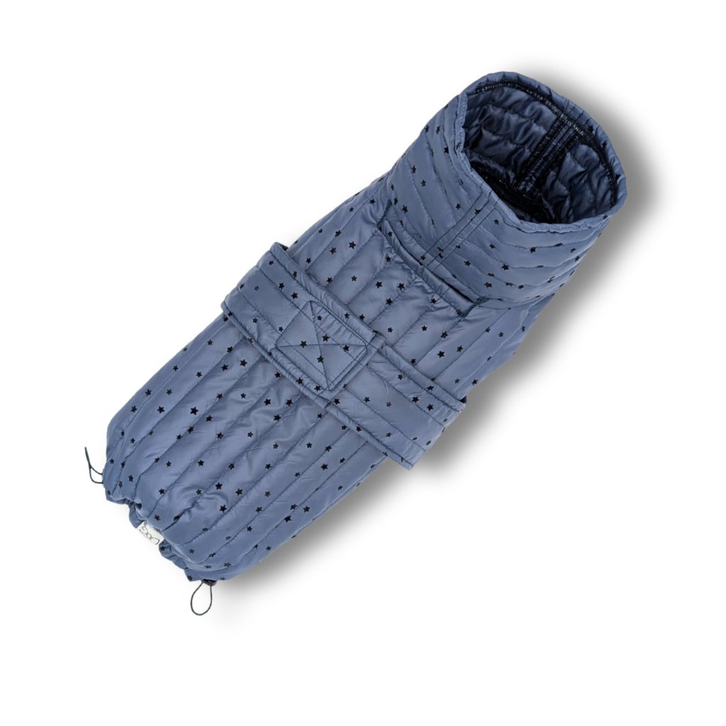 Tmavě modrá barva s drobnými hvězdičkami působí nenápadně, ale pořád má šmrnc. A hlavně – je to kus, který nebude mít na ulici nikdo další.