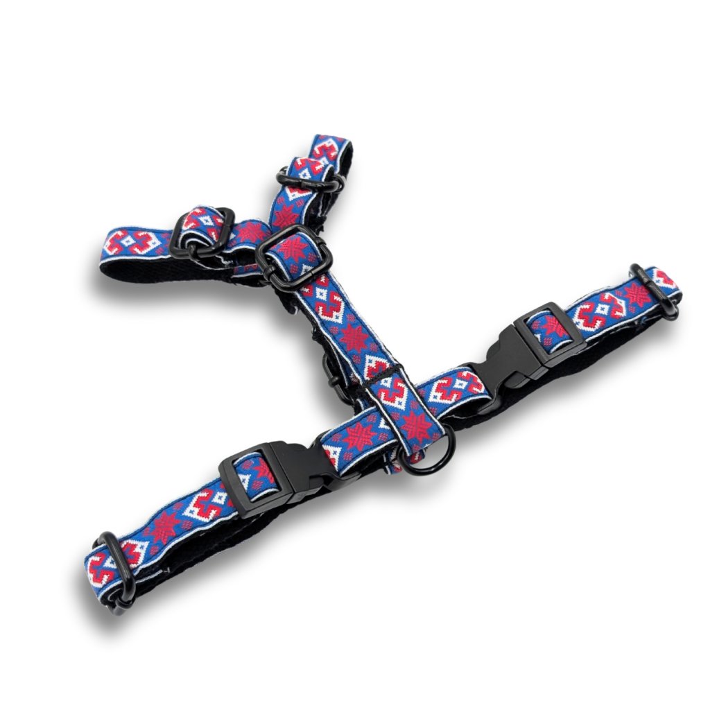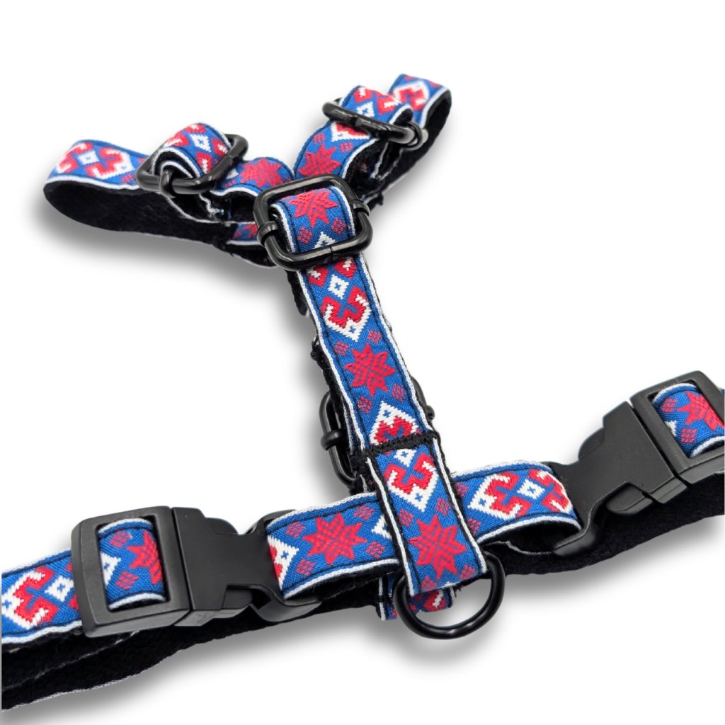 Ručně šitý v Česku, s ohledem na pohodlí vašeho chlupáče a na udržitelnost. Bavlněné popruhy jsou pevné, ale lehké – vhodné na každodenní venčení, výlety i městské toulání.