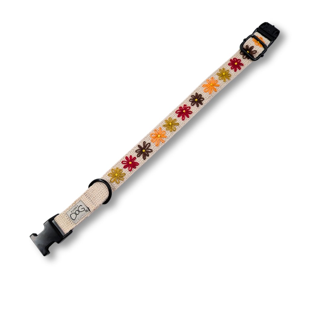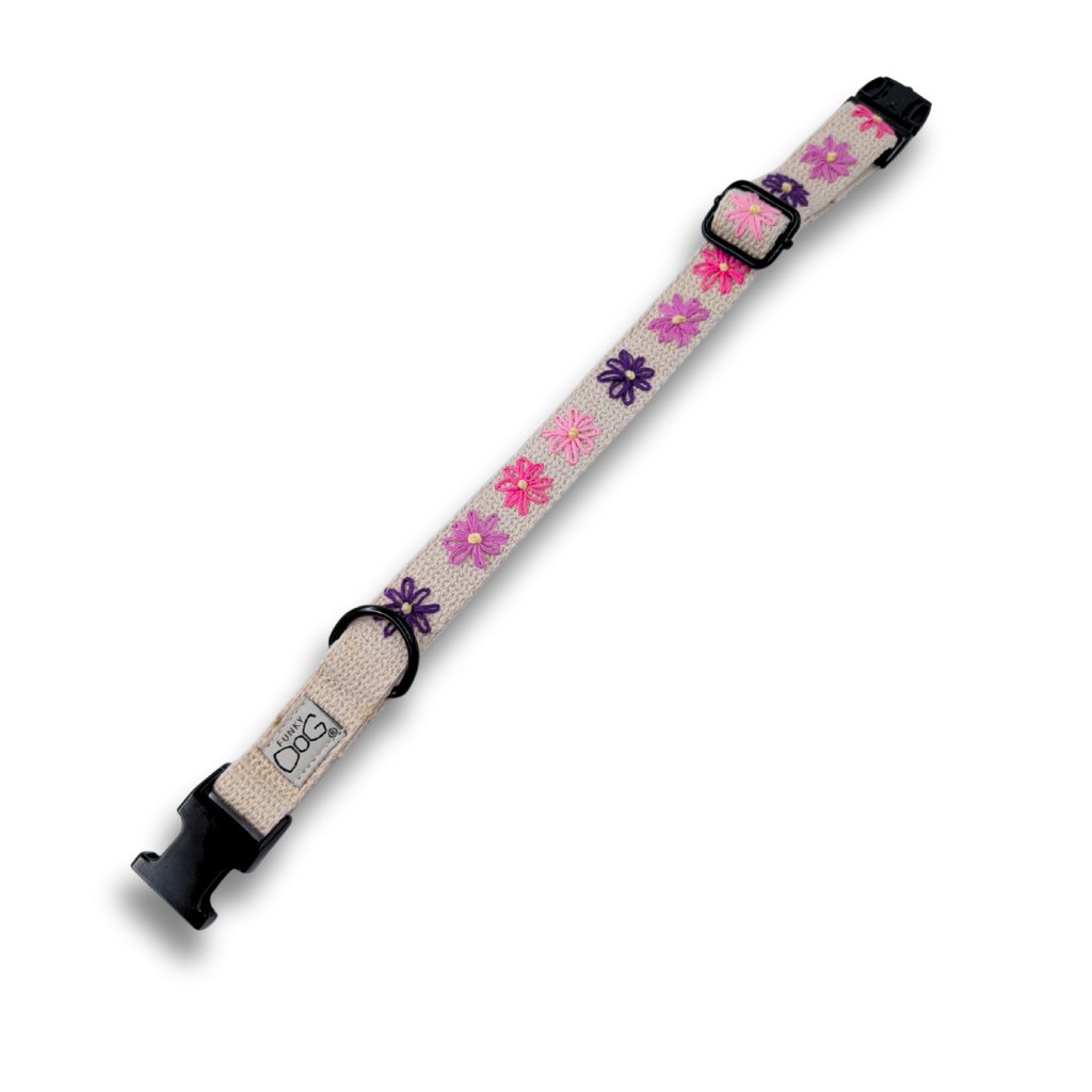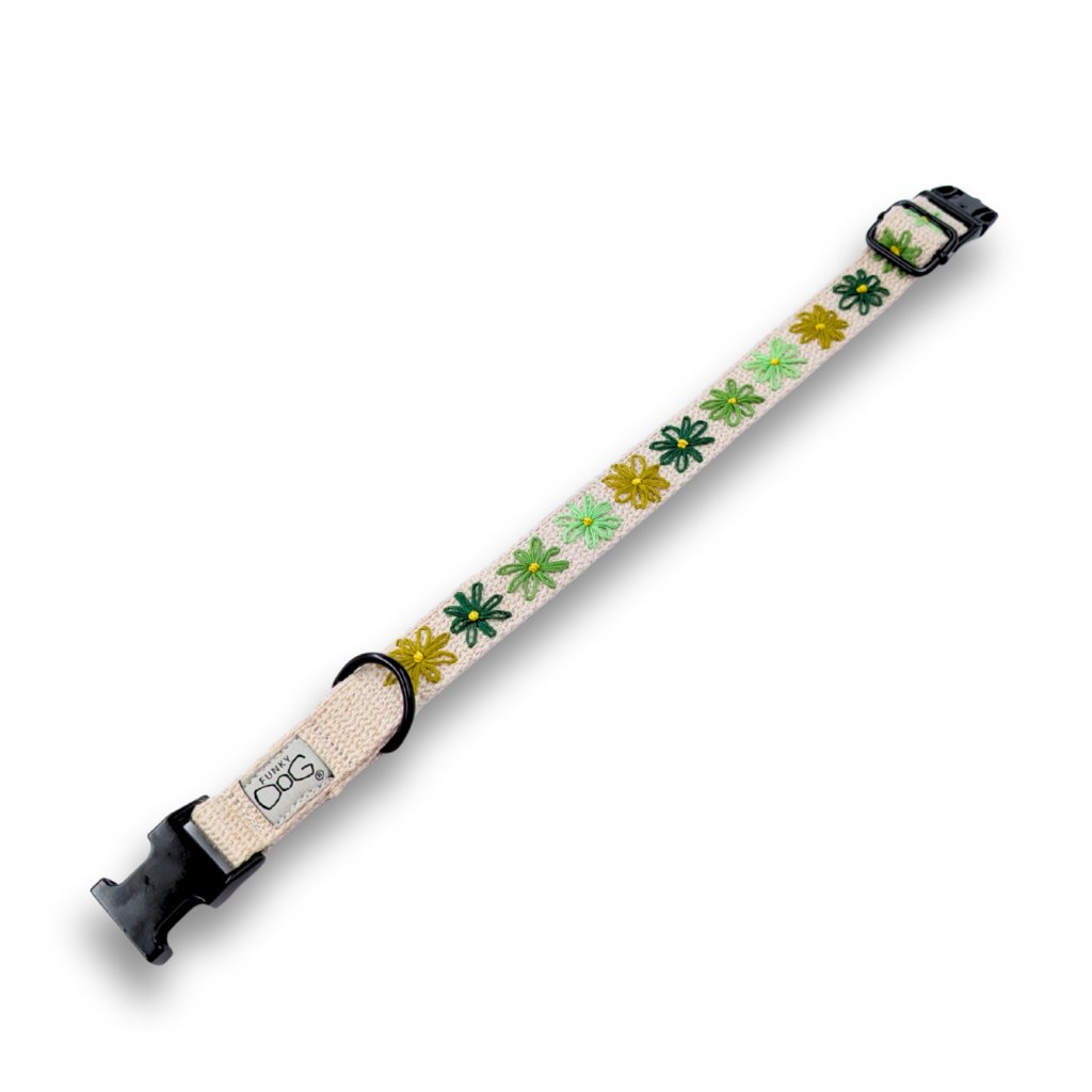 Ručně Vyšívaný Konopný Obojek pro Psa - Kytičky